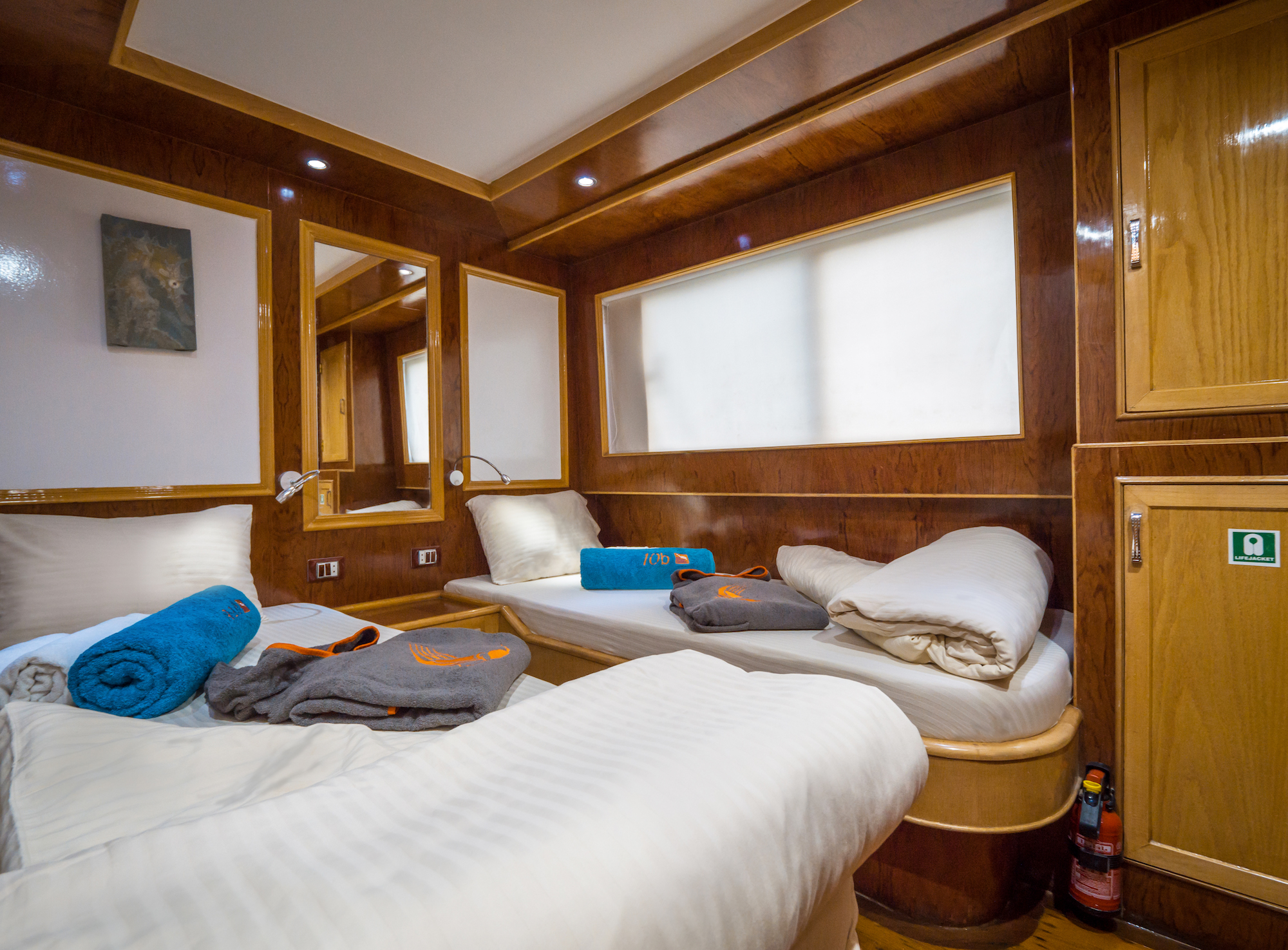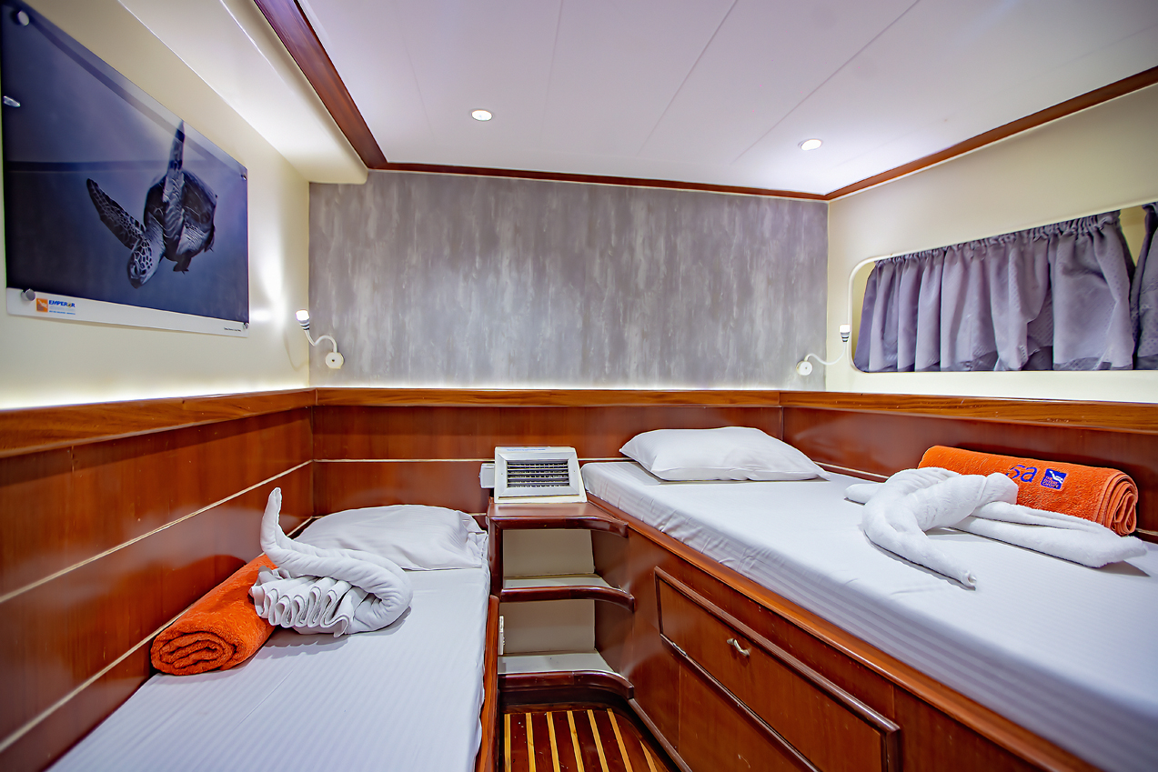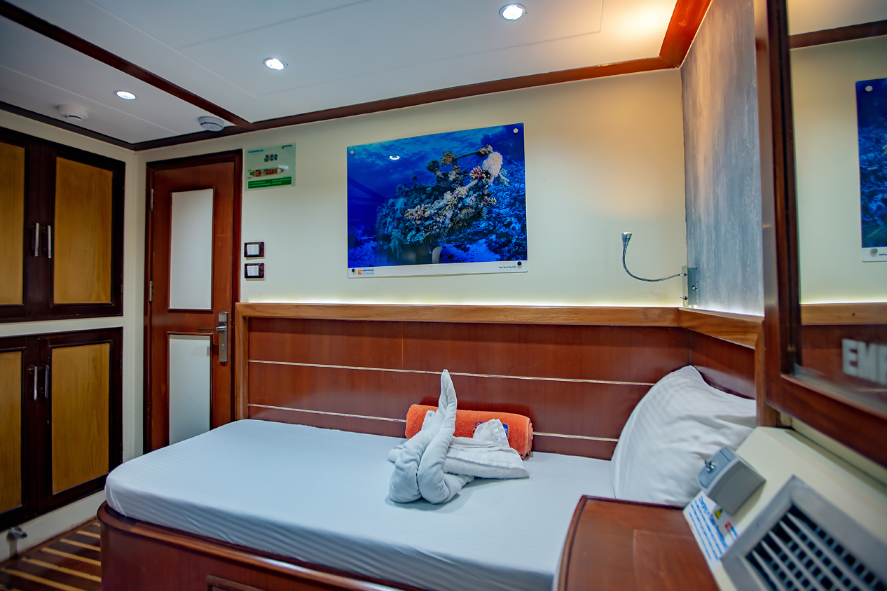 Emperor Asmaa is designed with the diver in mind, comfortably accommodating 20 people in 10 twin-berth cabins (4 x Upper Deck), all ensuite with individual air conditioning and two towels per guest.