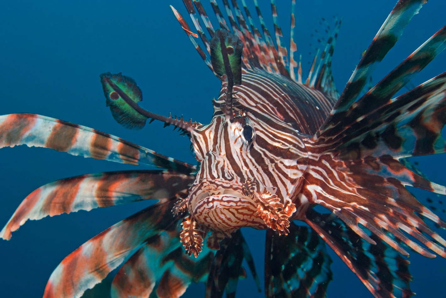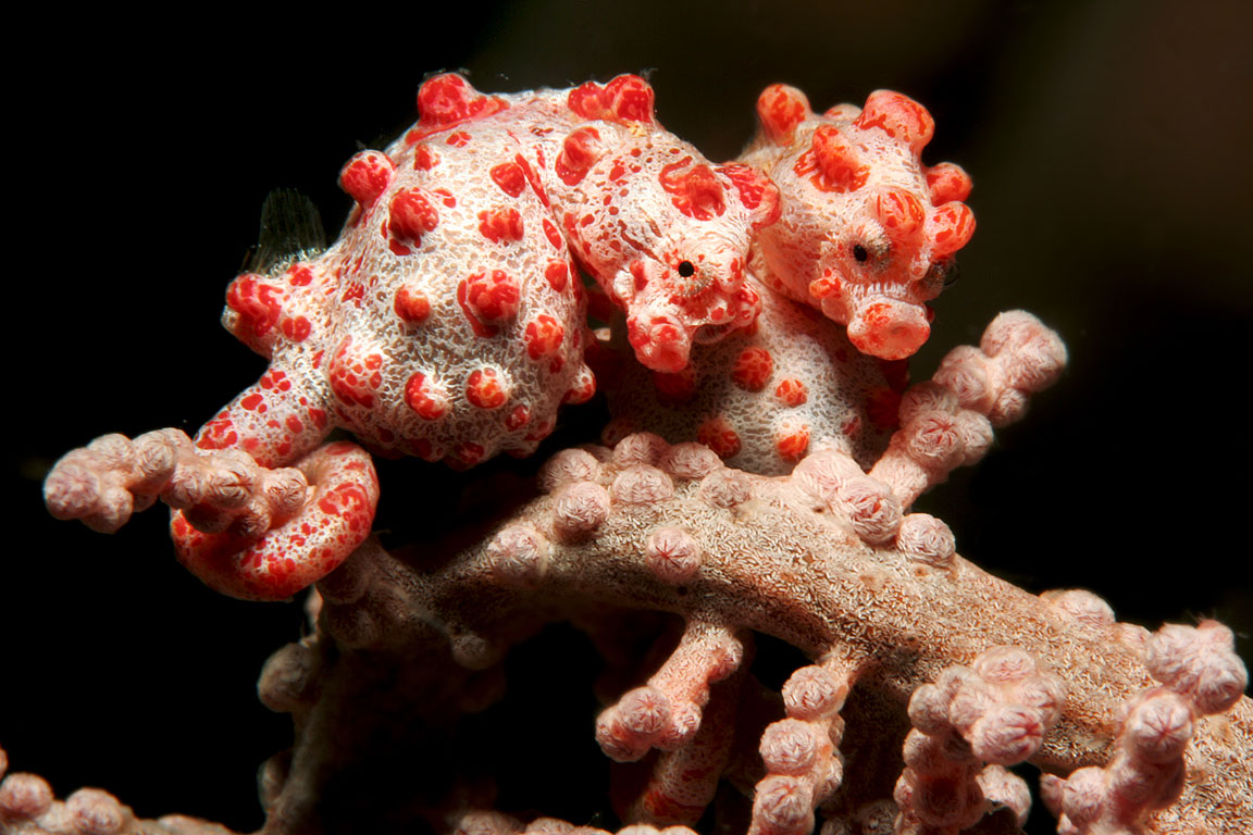 Marine biologists from around the globe visit to study the diverse fauna found in the soft corals and reefs of this region. Photographers have an array of subjects to capture, including vibrant fish, blennies, pipefish, turtles, frogfish, nudibranchs, tuna, jacks, and octopuses. In the Gangga and Bangka Archipelago, divers can expect to see soft corals, blue-ringed octopuses, cuttlefish, and more. Guests also have the opportunity to explore the Bunaken National Marine Park, renowned for its eagle rays, jackfish, tuna, sharks, turtles, Napoleon wrasse, and barracudas. Additionally, the Lembeh Strait is famous for its wide variety of exotic, bizarre, and rare species.