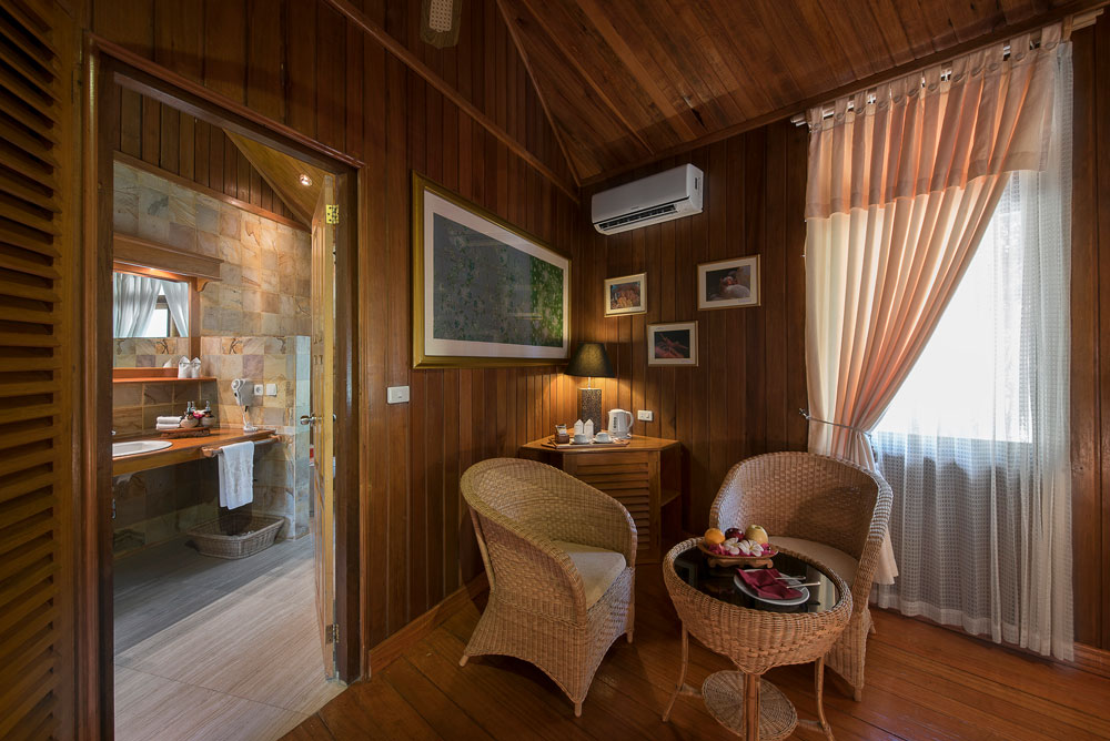 The resort features 30 beautifully crafted guest bungalows, designed in the local Minahasa style. Each bungalow includes a private bathroom, verandah, air conditioning, ceiling fan, minibar, satellite TV, and coffee and tea making facilities. The superior and deluxe bungalows offer versatile room configurations, with options including a king bed, twin beds, a king bed with an extra twin, or three twin beds, accommodating any guest combination. Extra beds and cots are available upon request and may incur additional charges.