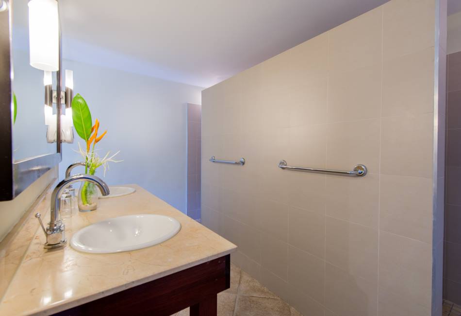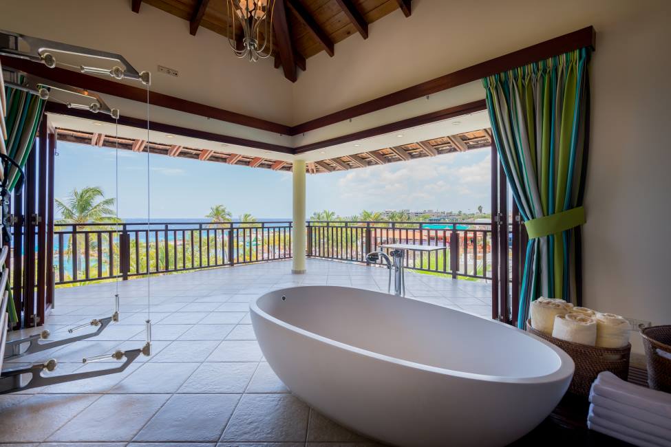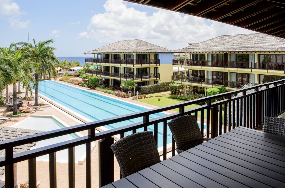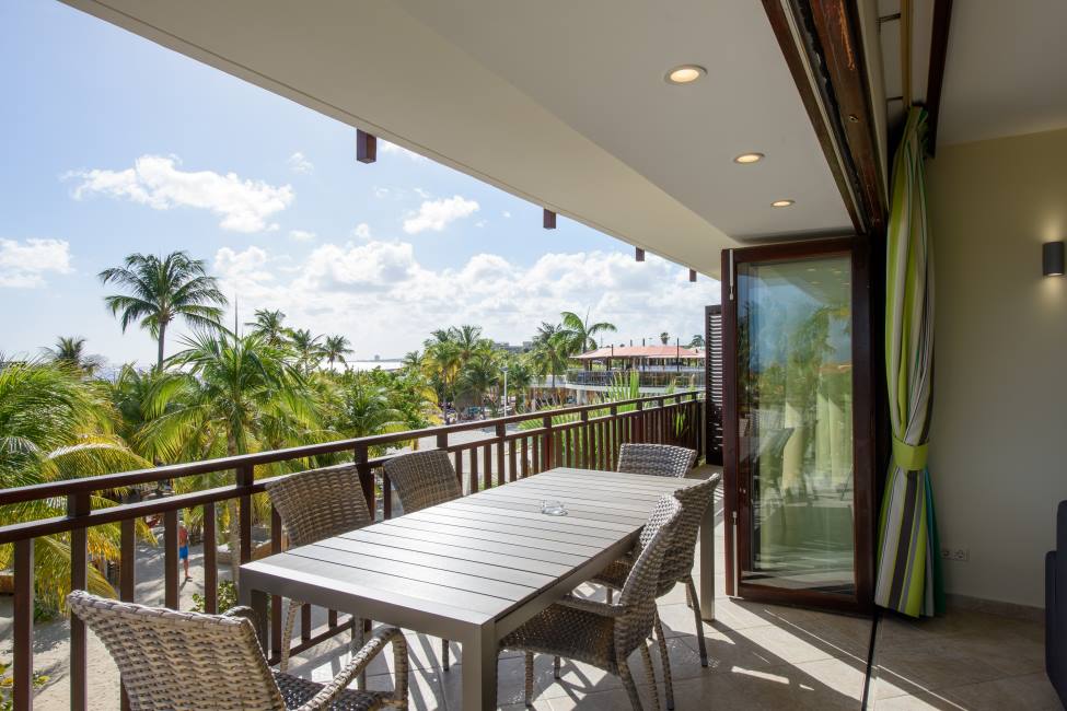 Very spacious private balcony with views overlooking the beach and the Caribbean sea.