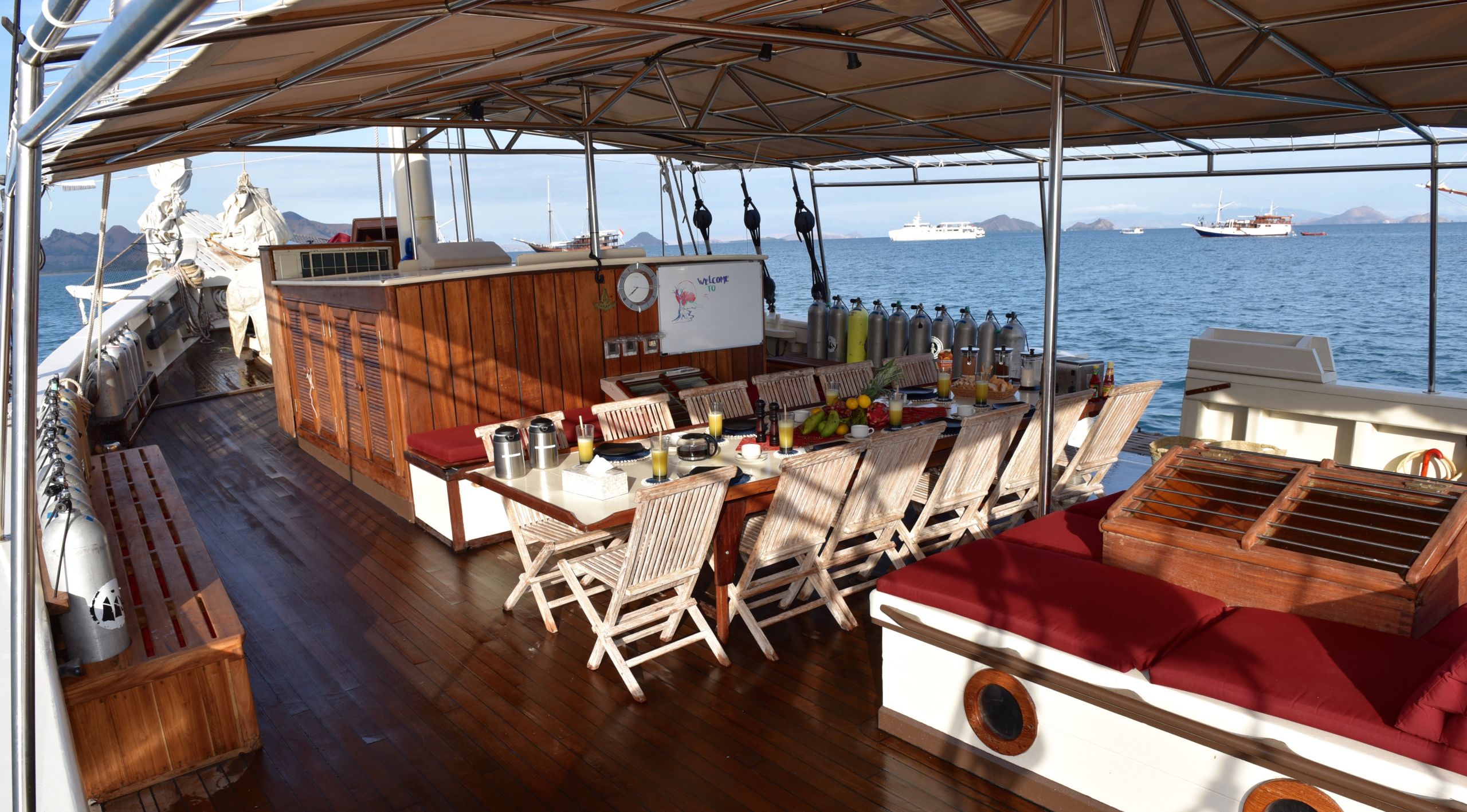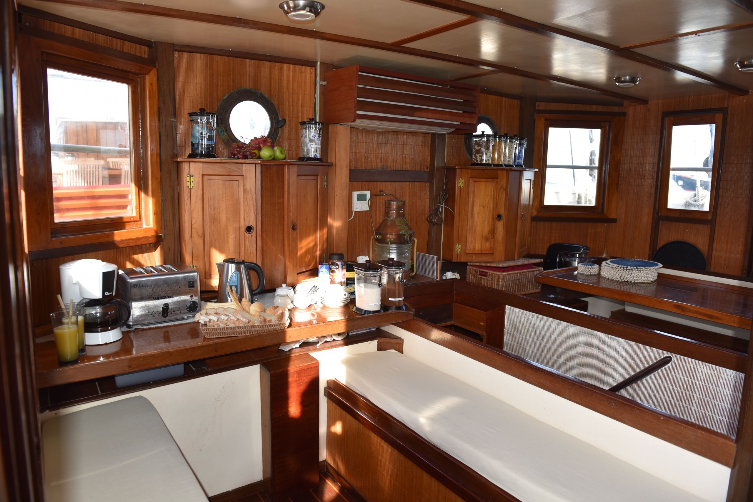Raja Laut means ‘King of the Sea’ and stepping on board this yacht built from tropical hardwood, you will experience a truly regal sense of sailing the Indonesian seas; freedom, style, and comfort.