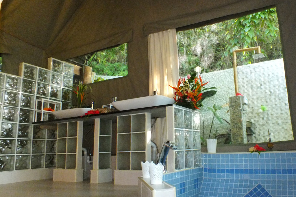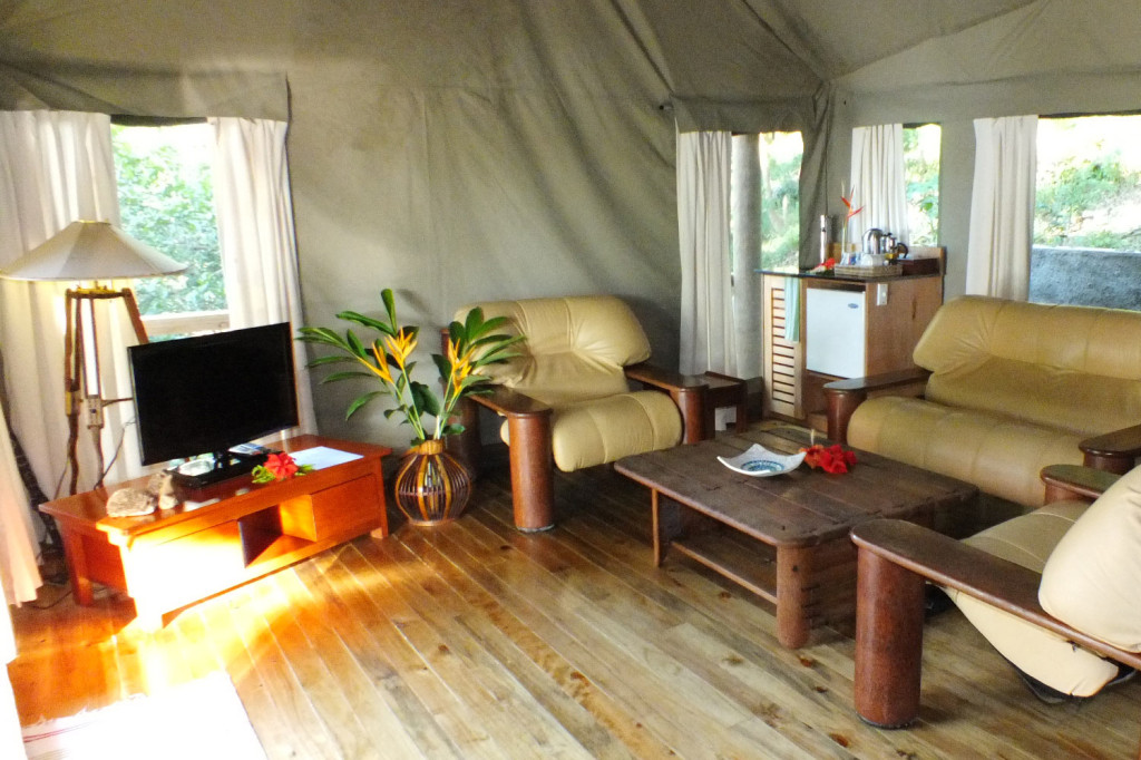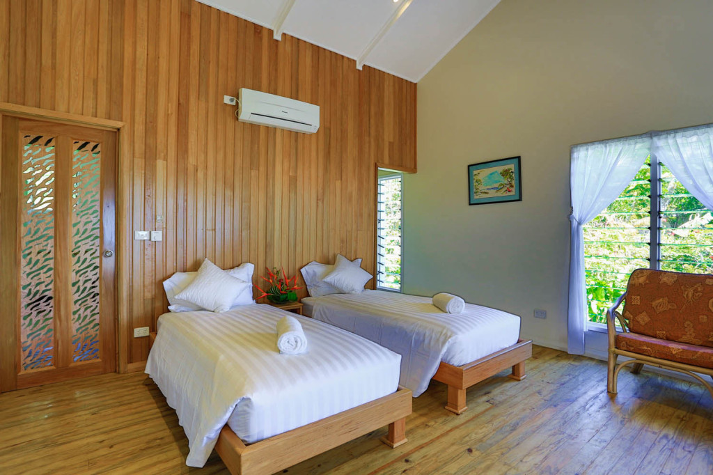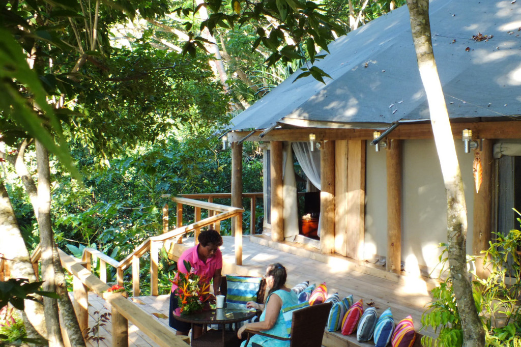 Sau Bay Fiji Retreat features 5 options for guest accommodation – three Studio cottages, one 2 bedroom deluxe suite cottage and the luxury African Safari tent.,. All accommodations feature King beds, or two King Singles. Rooms all have Granite wet bars, stocked with an assortment of complimentary teas and French press coffee. Mini –refrigerator, ceilings fans and optional air-conditioning, TV with DVD player. Through the walk-in closet which also has a small safe for valuables, is the modern ensuite; separate toilet, granite vanity with his/her hand basins, Pure Fiji products, rain head shower leading to the large outdoor shower.